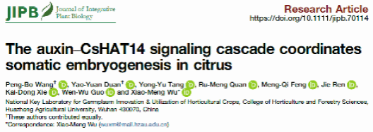 Journal of Integrative Plant Biology|郭文武/伍小萌课题组在生长素信号级联调控柑橘体细胞胚发生机理方面取得新进展发布时间:2026年1月28日